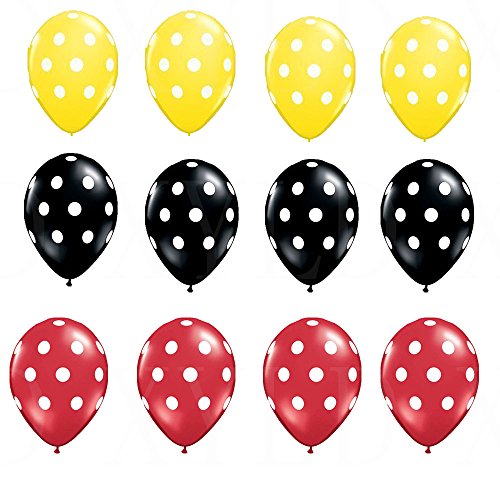 • Pack Of 60 ( 20 Red Polka + 20 Black Polka + 20 Yellow Polka Dot Balloons