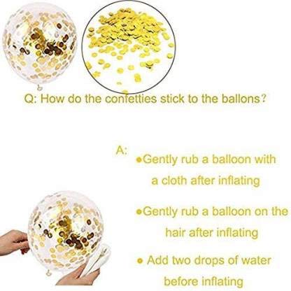 • EASY TO USE : These balloons come with Black and gold and White confetti inside. The balloons could be blow up easily with helium or air. After inflated please rub gently with carpet silk hair(best way) and roll the balloons. Static electricity is a good