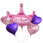 Princess Crown Foil Balloons with 2 Purple hert and 2 Pink hert Foils Ballloons 18 inches of Princes