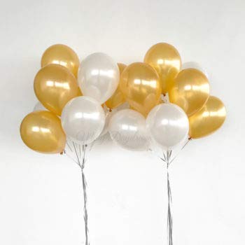 Products 10 Inch Metallic Hd Shiny Toy Balloons - Gold White for Decoration and Party (20 Pcs)