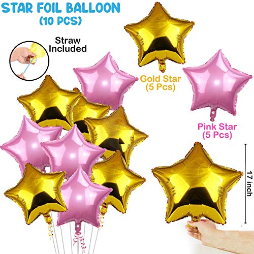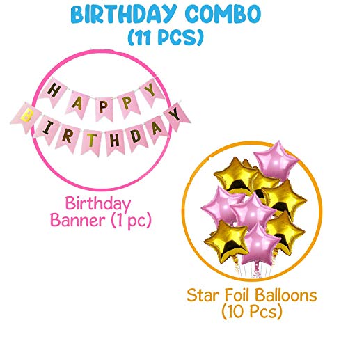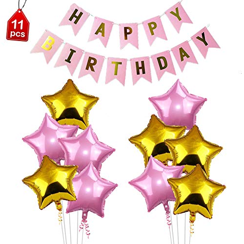 Color:Pink11Pcs Brthday Decoration Combo Includes: 1Pc Pink happy Brthday banner 10Pcs Star foil balloons.Pink happy Brthday banner has golden foil print and is made of 300Gsm cardstock. Note: Banner is Diy kindly assemble before party.10Pcs Star foil balloons has 5Pcs Pink star and 5Pcs Golden star foil balloon. They are 18" in size.They can be filled with helium or air.°¬°Want to capture a great Brthday instagram picture?? buy this... click and post !!! You are just one step away
