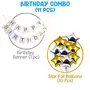 Color:White11Pcs Brthday Decoration Combo Includes: 1Pc White happy Brthday banner 10Pcs Star foil balloons.White happy Brthday banner has golden foil print and is made of 300Gsm cardstock. Note: Banner is Diy kindly assemble before party.10Pcs Star foil balloons has 5Pcs Golden star and 5Pcs silver star foil balloon. They are 18" in size.They can be filled with helium or air.°¬°Want to capture a great Brthday instagram picture?? buy this... click and post !!! You are just one step away