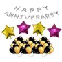Package included: 100 Pic Metallic Balloons (50 Pic Golden + 50 Pic Black) + 4 pcs Star Foil balloons (2 Golden + 2 Small Pink) + 16 Letter (Happy Anniversary Silver foil balloons)