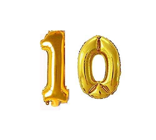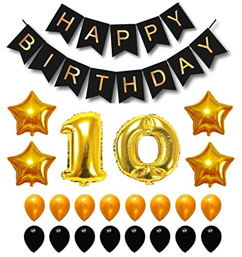 Jindal Party Products Happy Birthday 10th Year Party Balloons Decorations Set(10 Gold Number Foil Balloon+50 Gold & Black Latex Balloon+1 Black Happy Birthday Banner+ 4 Gold Star Foil Balloons)