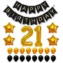Jindal Party Products Happy Birthday 21th Year Party Balloons Decorations Set(21 Gold Number Foil Balloon+50 Gold & Black Latex Balloon+1 Black Happy Birthday Banner+ 4 Gold Star Foil Balloons)