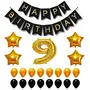 Jindal Party Products Happy Birthday 9th Year Party Balloons Decorations Set(9 Gold Number Foil Balloon+50 Gold & Black Latex Balloon+1 Black Happy Birthday Banner+ 4 Gold Star Foil Balloons)