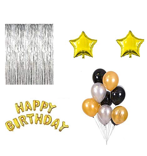 Size:Pack of 30|Color:MulticolorHappy Brthday Letter Foil Balloon Set of Golden + 2Pcs Silver Fringe Curtain (3 X 6 Feet) Happy Brthday alphabet letter foil balloon (Golden) set of 13 letters + Pack of 30 pcs Black Gold & Silver balloons Ship Non inflated Height of each letter is approx 16 inches and can cover wall space of about 20 sq. Feet Other balloons in picture only for reference .Complete backdrop for Brthday Suitable for Brthday theme party decorations and Brthday party supplies