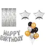 Size:Pack of 60|Color:MulticolorHappy Brthday Letter Foil Balloon Set of Silver + 2Pcs Silver Fringe Curtain (3 X 6 Feet) Happy Brthday alphabet letter foil balloon (Silver) set of 13 letters + Pack of 60 pcs Black Gold & Silver balloons Ship Non inflated Height of each letter is approx 16 inches and can cover wall space of about 20 sq. Feet Other balloons in picture only for reference .Complete backdrop for Brthday Suitable for Brthday theme party decorations and Brthday party supplies