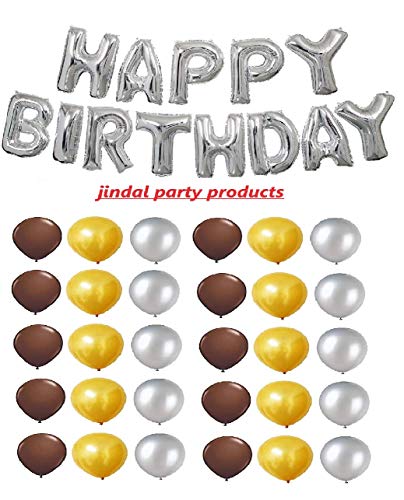 Jindal Party Products Happy Birthday Letter Foil Balloon Set of 13 Letters (Silver) + HD Metallic Finish Balloons (Golden , Silver , Brown) Pack of 30