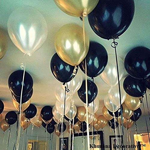 Size:Pack of 25|Color:Golden Silver BlackProducts is famous for sell varieties of Brthday supplies and other party supplies. we are famous for gift items balloons KDs play items and party decoration items. Metallic Finish Latex balloons are beautiful and fun addition to any party. No party would seem complete without balloons to play around with. Balloons are not just for KDs parties they can be used anywhere anytime and for any occasion you wish to celebrate. Whether it is a party in the office a Christmas bash a Small shower wedding or a causal party for friends balloons seem to be an essential of party supplies. Along with buntings balloons are the most favored decorations for any occasion