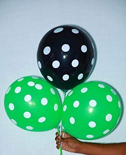 Jindal Party Products Polka Dot Finish Balloons For Birthday / Anniversary / Wedding Party Decoration (Black, Green) Pack of 30