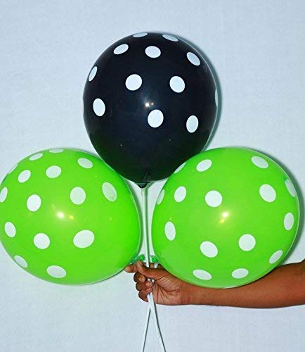 Jindal Party Products Polka Dot Finish Balloons For Birthday / Anniversary / Wedding Party Decoration (Black, Light Green) Pack of 25