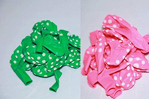 Jindal Party Products Polka Dot Finish Balloons For Birthday / Anniversary / Wedding Party Decoration (Green, Light Pink) Pack of 25
