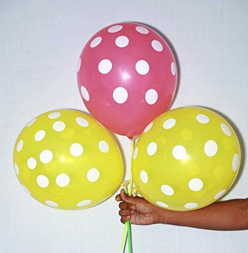• Beautiful premium polka dot yellow pink balloons pack of 75 in assorted colors.