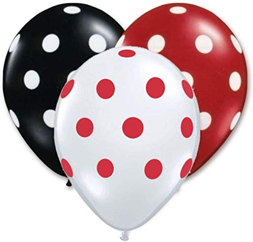 Size:Pack of 75|Color:Red Black White Polka DotPolka dot balloons 12" size in attractive colour. Best suitable for indoor and outdoor party decoration. Brthday party decoration becomes more vibrant and colourful with polka dot balloons in different colours. Balloons Can Be Used Anywhere Anytime And By People Of All Ages. Personalize The Party With These Helium/Air Foil Balloons. Bring Color Into A Party With Great Balloon Art. Use It To Liven Up The Party Venue And Win Over The herts Of The KDs By Giving Balloons As Party Favors.