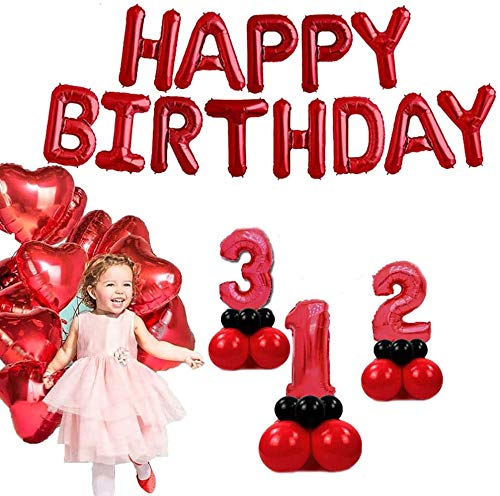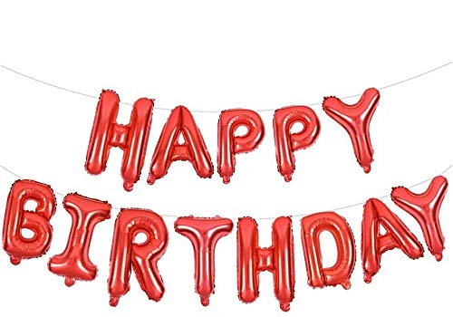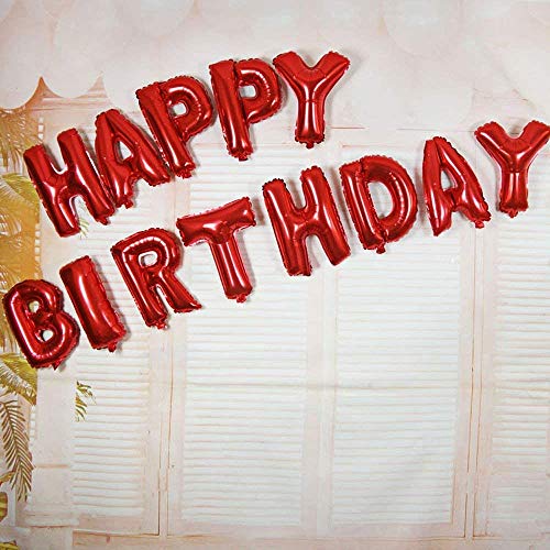 Theme My Party Red Happy Birthday Banner Balloons, 16 Inch Foil Letters Balloons Banner Reusable Eco Friendly Material for Birthday Decorations and Party Supplies
