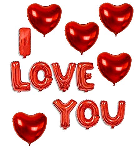 Evisha Red I Love You and 5 Pcs Red Heart Foil Aluminum Balloons| Gift for Valentine| Valentine Gift | Valentines Day Gift |Valentines Day Decoration Items| Party Decoration Items