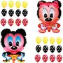 Masti Zone 4 Pcs Cartoon Character Foil Balloons (2 Minnie +2 Mickey ) with 30 Red ,Yellow ,Black Polka Dot Balloons for Birthday Theme Parties