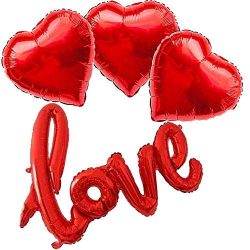 1Pcs Red Love Foil Balloon with 3 Pcs Red hert Shape Foil Balloon for Wedding Enagement Valentine's