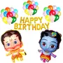 4 Pcs (2 little krishna +2 Hanuman ) Foil balloons With 1 Pcs Happy Brthday Banner and 50 Multi Colour Balloons for KDs Brthday Small shower