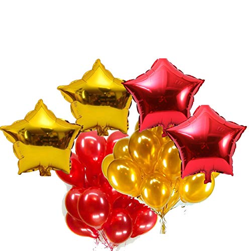 Masti zone Pack of 50 Matallic Latex 12 " (25 Golden +25 Red ) Balloons and 4 Star Shape Foil Balloon for Wedding, Birthday, New Year, Christams, Valentine's Day