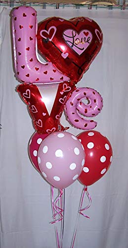 Red Pink Colour 36" Love Foil Balloon with 40 Red Pink Polka Dot Balloons Wedding Enagement Valentin