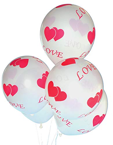 Masti Zone 50 White Love Heart Printed Balloons Wedding, Enagement, Valentine's Day Celebration