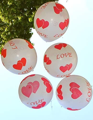 50 White Love hert Printed Balloons Wedding Enagement Valentine's Day Celebration