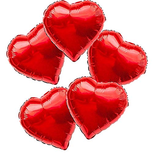 Pack of 5 Red Colour hert Shape Foil Balloons for Brthday Wedding Enagement Valentine's Day Celebrat