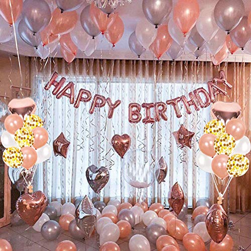 Rose Gold Brthday Party Decorations Set - Happy Brthday Balloons Banner Confetti Balloons hert Foil