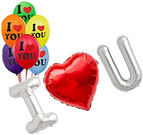 • I LOVE YOU Printed Balloon red hert foil and 2 silver letter balloons For Valentines Day Party Wedding Anniversary Engegment Brthday Bachalor Party Theme Party
