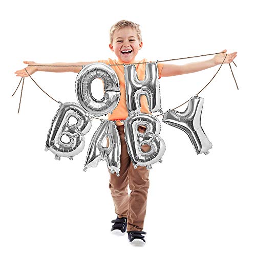 Silver Oh Small Foil Letters Balloons Banner Garland Hanging Party Kit for Small Shower Gender Revea