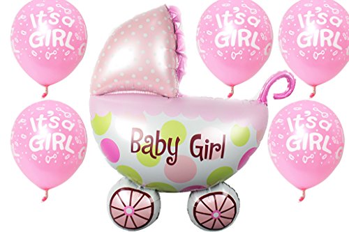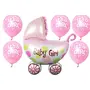 Evisha Baby Girl 1 Cardle Foil Balloon & 25 Girl Pink Latex Balloons for Baby Girl Shower Party Decoration