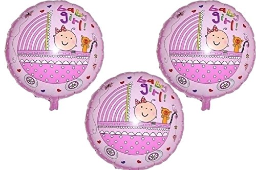 Evisha Baby Girl Pink foil Balloon for Baby Shower/Birthday, Set of 3 Balloons