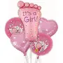 Size:Feet | Color:PinkThis lovely pink Small shower foil balloon bouquet is the perfect item for your welcome Small shower decorations. The main balloon is designed in the shape of a cute Small's foot and has the phrase 'It's A Girl!' printed across it along with small flowers. This bouquet also contains 2 hert shaped foil balloons and 2 round balloons with cute print. It's your Small boy's first celebration; make it grand and something to cherish by for the years to come!