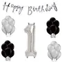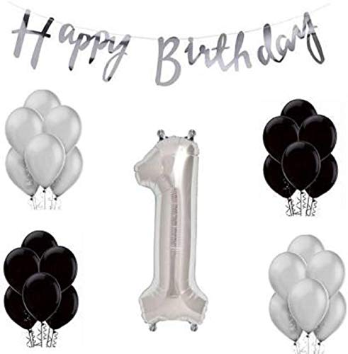 Stock Happy Brthday Banner with Black/Silver Metallic Balloons with Foil Number 1 (16 inches)