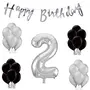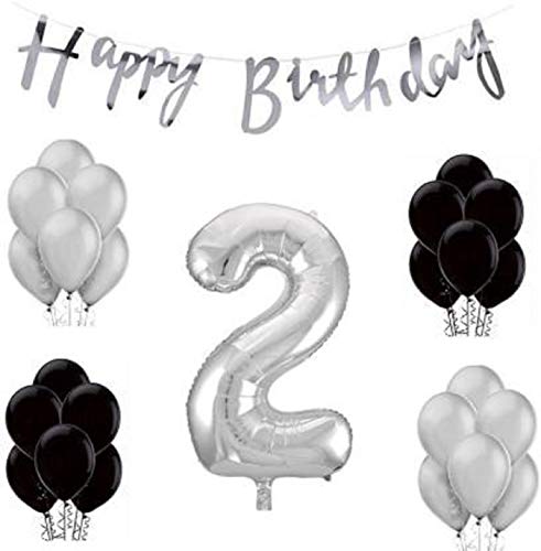 Stock Happy Brthday Banner with Black/Silver Metallic Balloons with Foil Number 2 (16 inches)