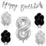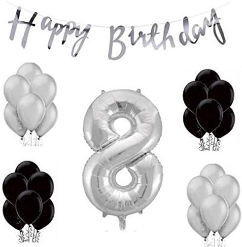 Stock Happy Brthday Banner with Black/Silver Metallic Balloons with Foil Number 8 (16 inches)