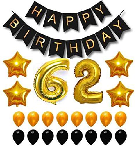 Stock Happy Brthday Black Paper Letters Balloon and Number Foil Balloon Set with 50 HD Metallic Black & Golden Balloons + 4 Star foil Balloon Kit (Pack of 57)