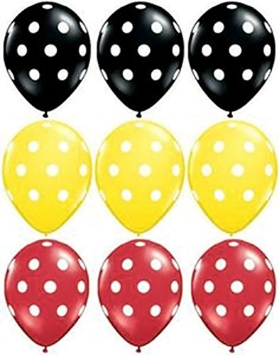 Evisha Yellow, Black and red Polka dot Big Size 24" Balloons for Theme Party, Birthday Party, Party Decoration - Pack of 50