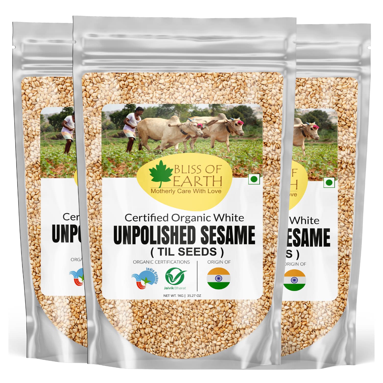 Bliss of Earth Unpolished Sesame Seeds Organic For Eating, Raw Til Seeds Pack Of 3x1kg