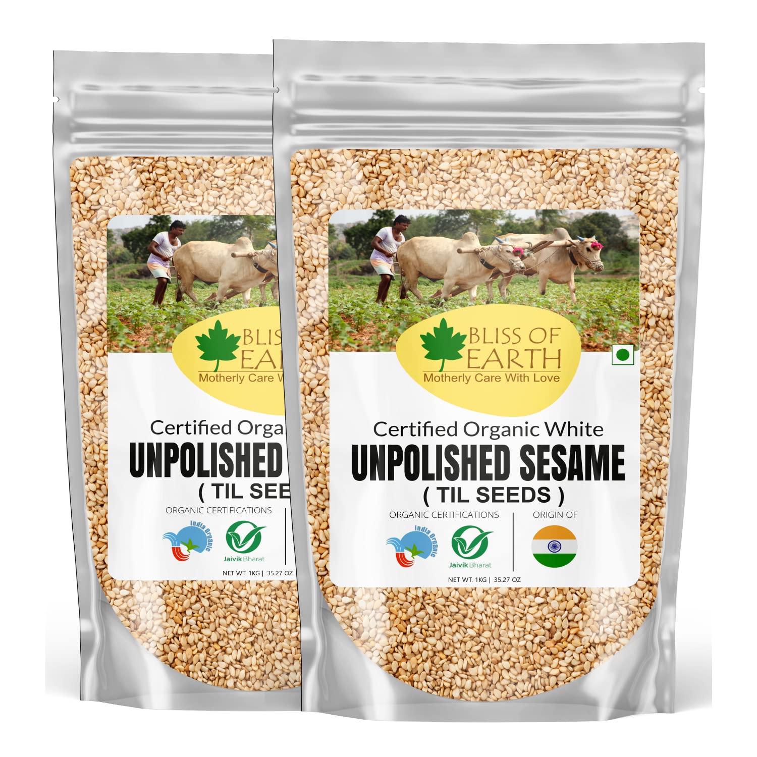 Bliss of Earth Organic Unpolished Sesame Seeds White For Eating, Raw Til Seeds Pack Of 2x1kg
