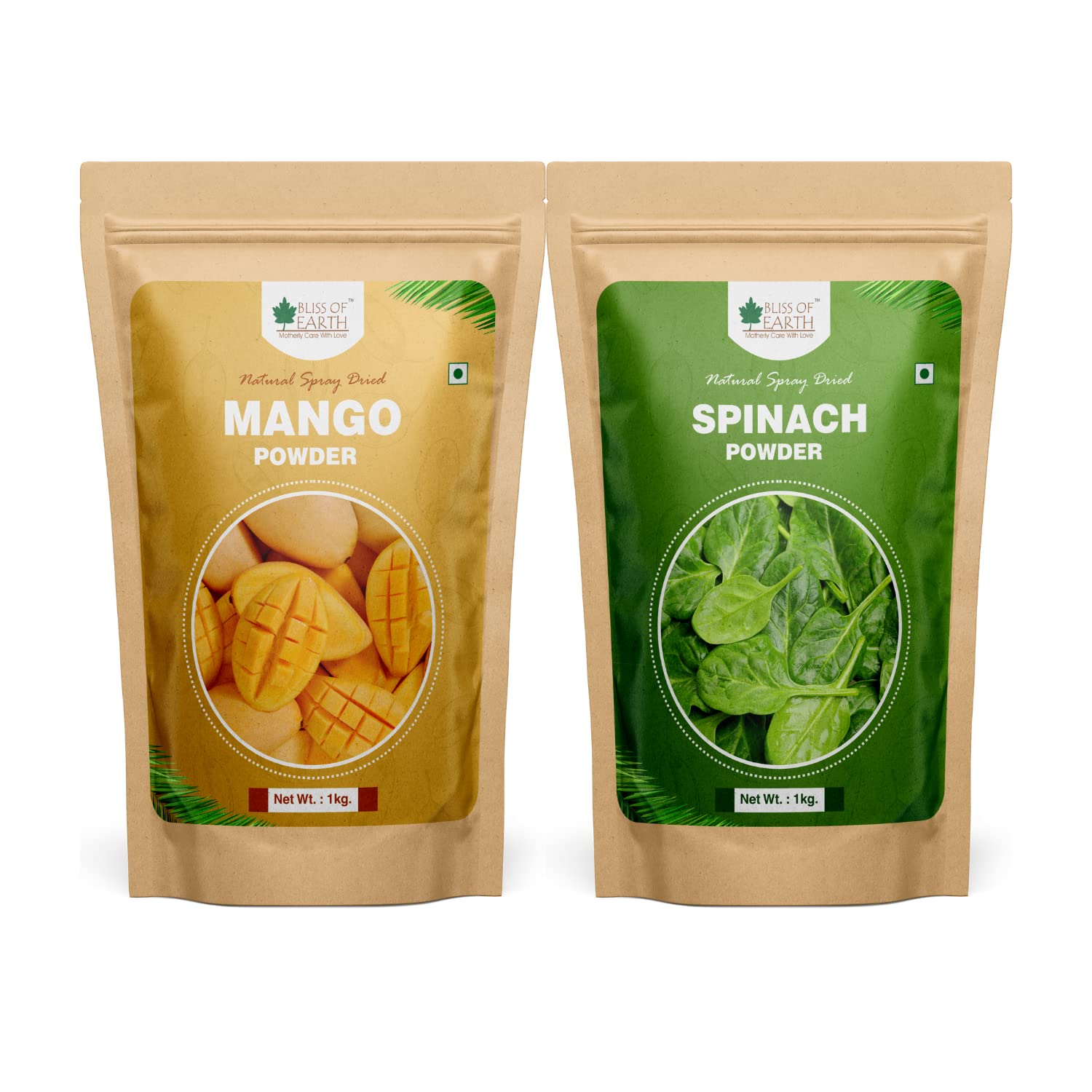 Bliss of Earth 1kg Spinach Powder + 1kg Mango Powder Natural Spray Dried Taste and Healthy Combo