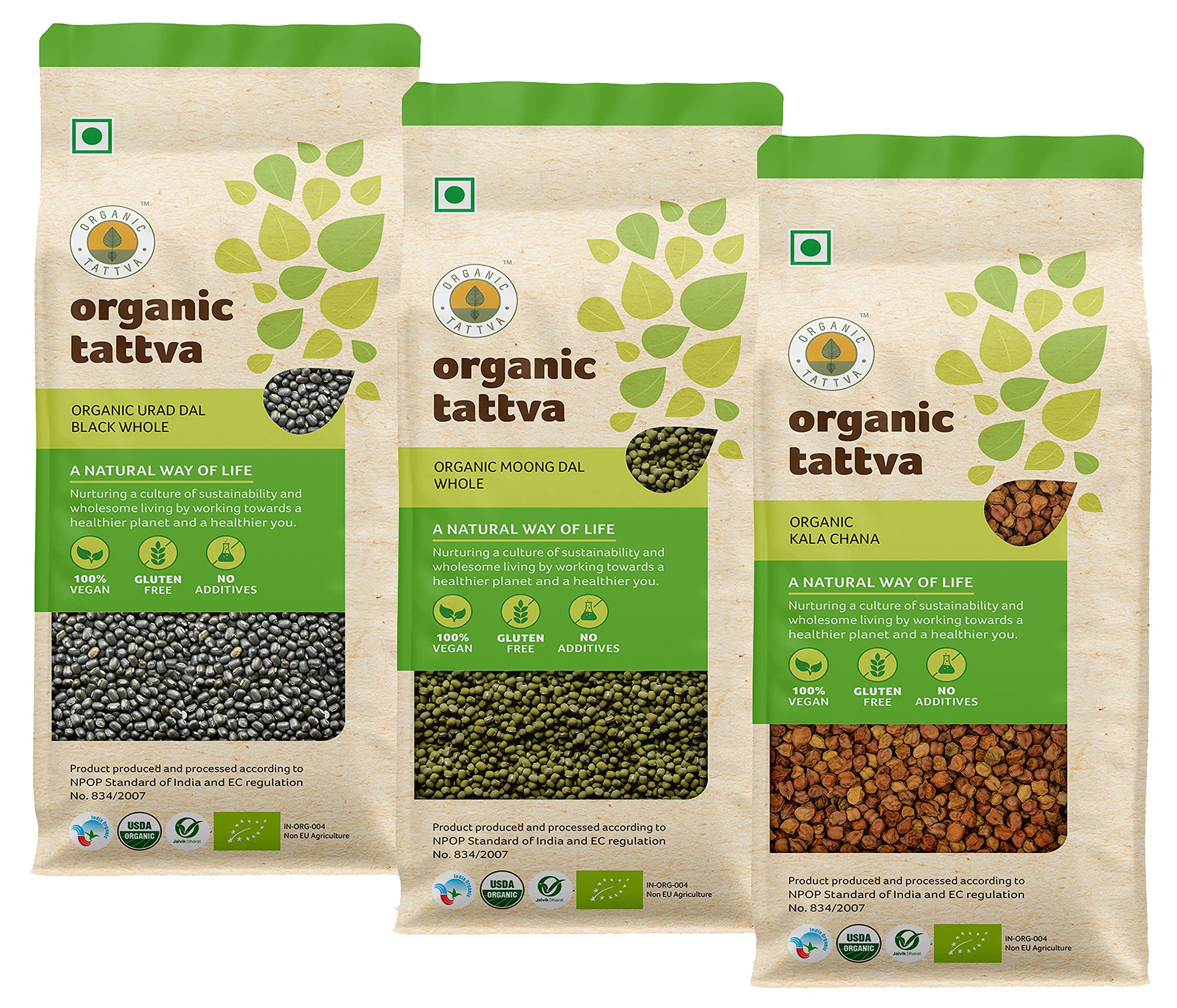HomeProducts without categoryOrganic Tattva, Organic Pulses Dal Sprouts Combo Kala Chana 1Kg, Green Moong 1Kg and Urad Black 500g WholeSabut Combo Pack