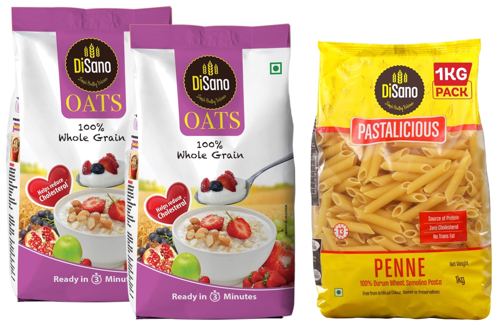 Disano Oats, 100% wholegrain, Pouch 2 kg & DiSano Pastalicious 100% Durum Wheat Penne Pasta, 1kg