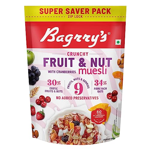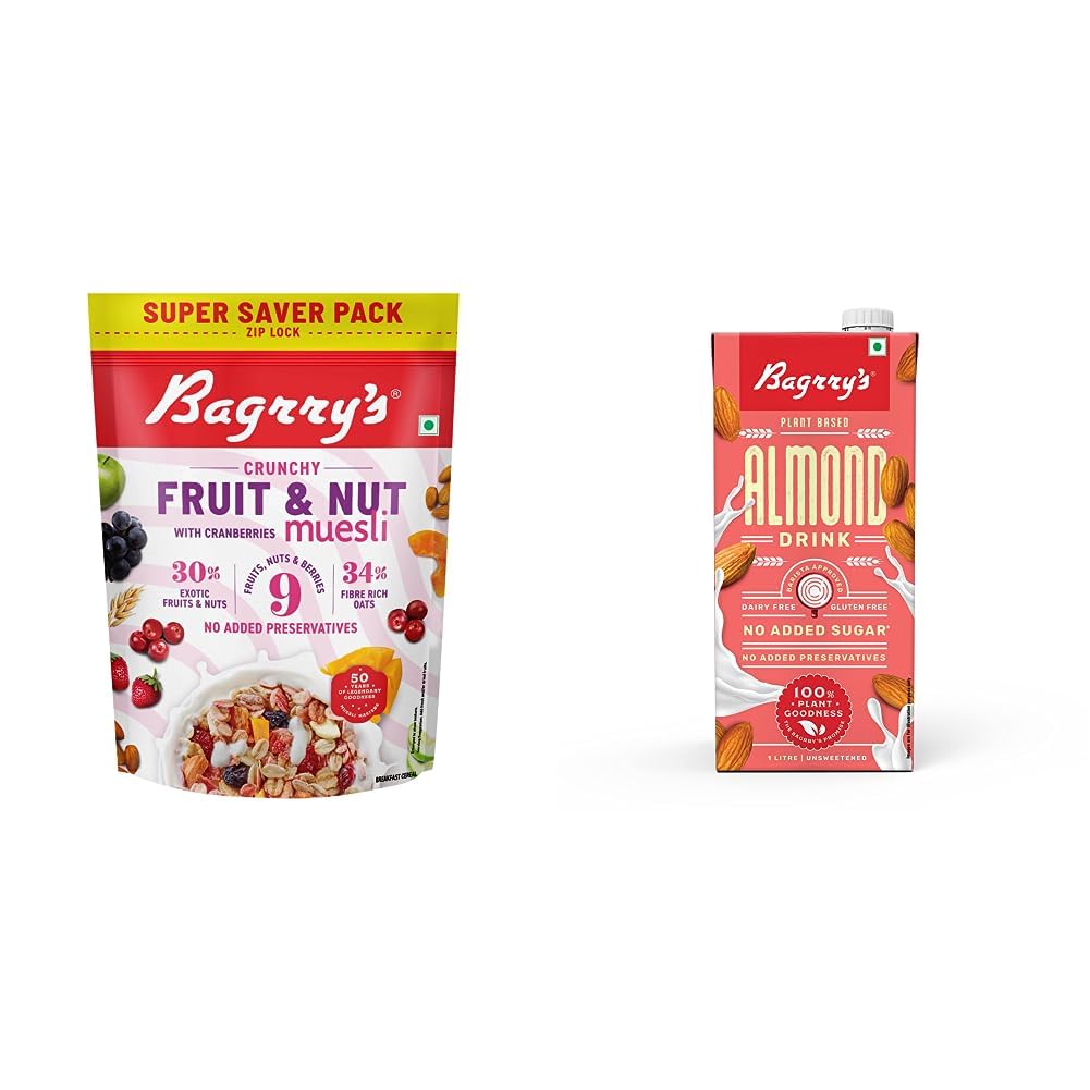 Bagrry's Crunchy Muesli with 30% Fruit & Nut Cranberries 750gm & Bagrrys Plant Based Almond Drink 1l | Vegan | Dairy free | No Added Sugar| Plant based milk | No Preservatives | Breakfast Cereals