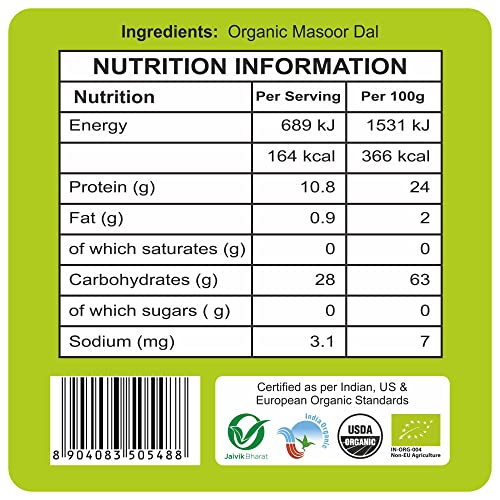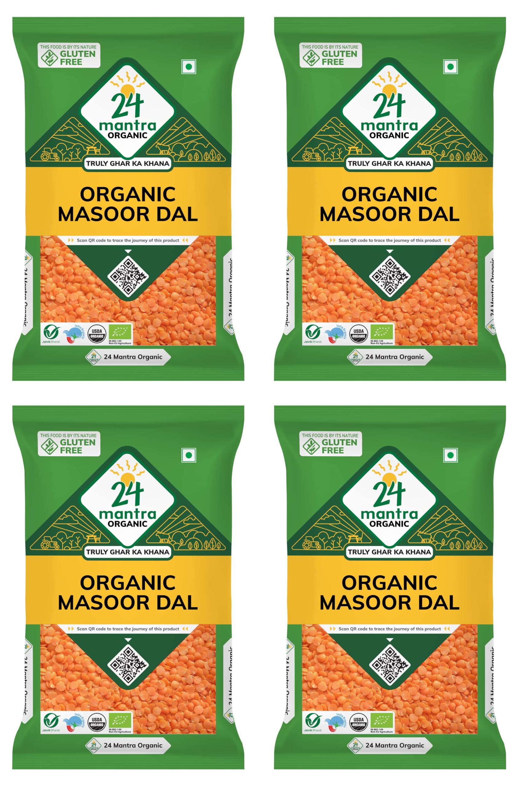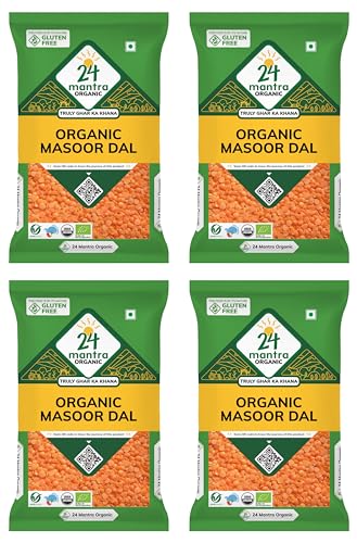 24 Mantra Organic Unpolished Masoor Dal/Red Lentil - 500 gms | 100% Organic | Chemical Free & Pesticides Free | Tastier & Rich Flavour (Pack of 4)
