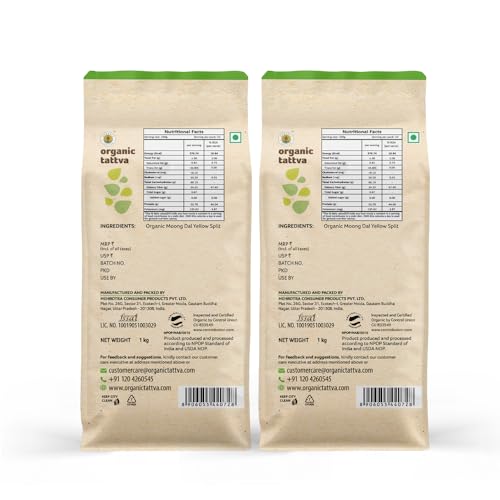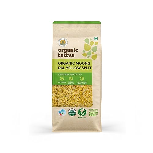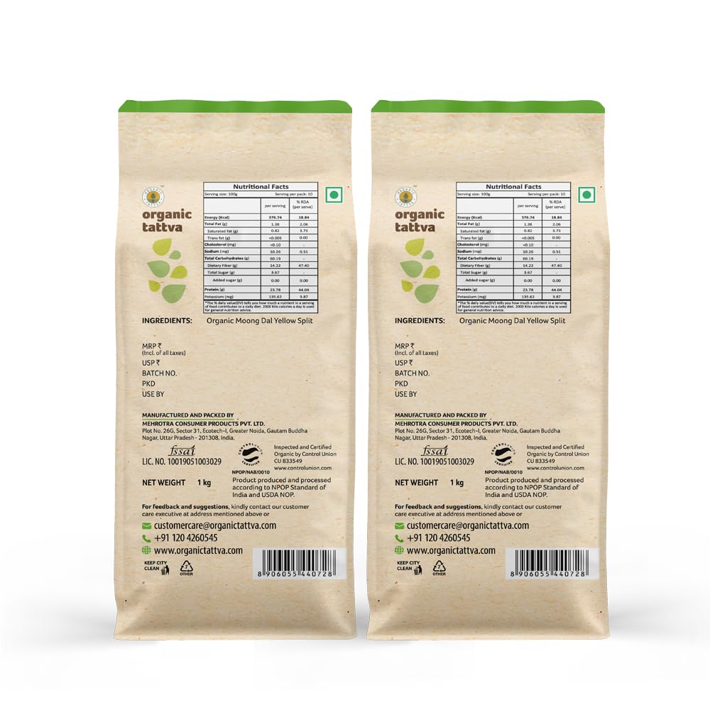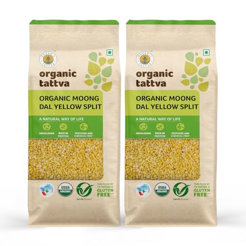 Organic Tattva, Organic Yellow Moong Split Gluten Free and Unpolished Dal, 1 Kg (Pack of 2)