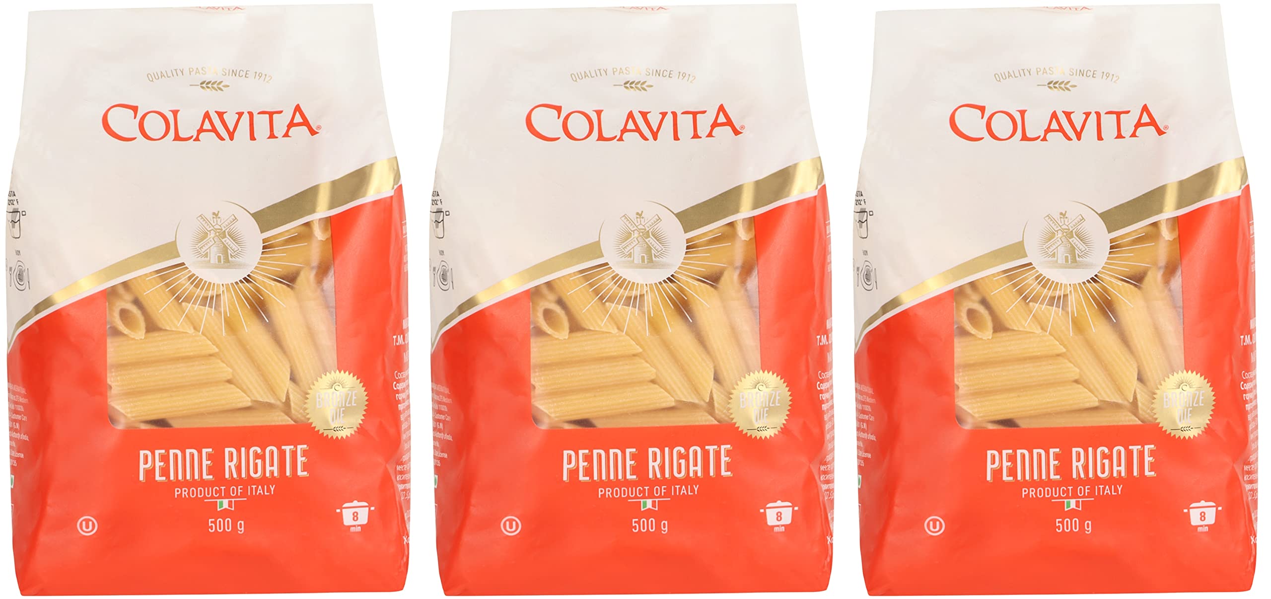 Colavita Penne Rigate Italian Durum Wheat Pasta Pouch, 3 x 500 g with Free! 2 x 25 ml Bottles of Extra Virgin Olive Oil