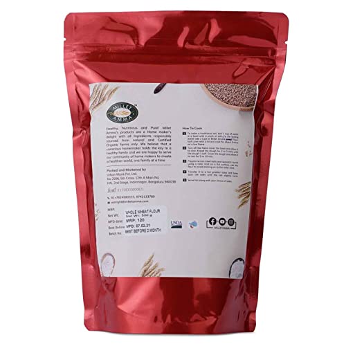 HomeProducts without categoryMillet Amma Organic Whole Wheat Flour Organic - 2 Kg (500g x 4 Packs) | Milled from Organic Wheat Berries - Consist of Endosperm, a Germ and Bran | 100% Vegan
